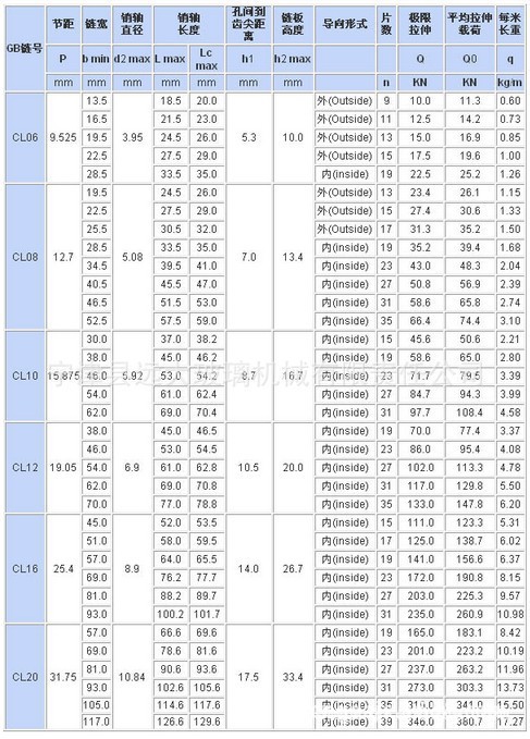 無聲齒形鏈條的數(shù)據(jù)資料