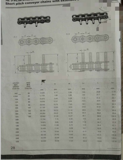 第一:規(guī)格型號多,A B系列短節(jié)距精密滾子鏈條,雙節(jié)距直板鏈條都可以做成加長銷軸鏈條。