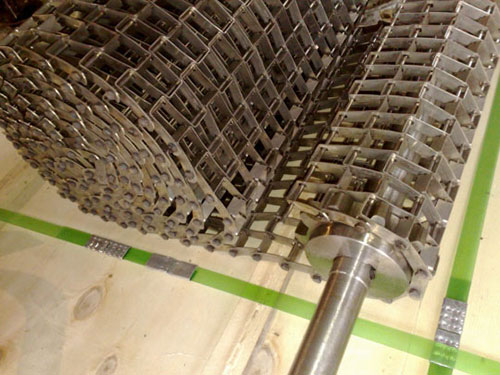 馬蹄鏈又稱長城網,由扁平金屬片和圓金屬絲所組成,網帶自重輕,網孔空隙大,網面平整,運行平穩(wěn),不會走偏??勺飨礈臁⒏稍?、冷卻、熱處理的輸送線。