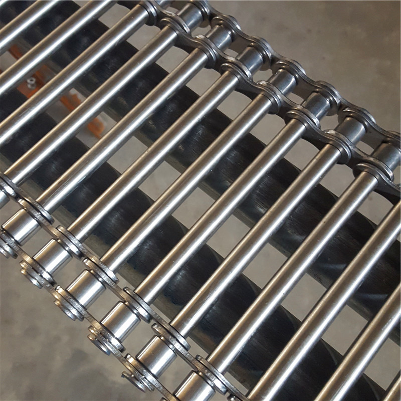 這是一種利用鏈條和支軸做成的傳送輸送帶。先把支軸穿軸的兩頭車細(xì),然后兩邊鑲上鏈條,最后用墊圈把支軸焊上或用開口銷銷上,這就是鏈桿式輸送帶。鏈條的節(jié)距和材質(zhì)和滾子的大小各種都有,支軸的粗細(xì)和材質(zhì)和直徑和長度有多種型號供選擇。
