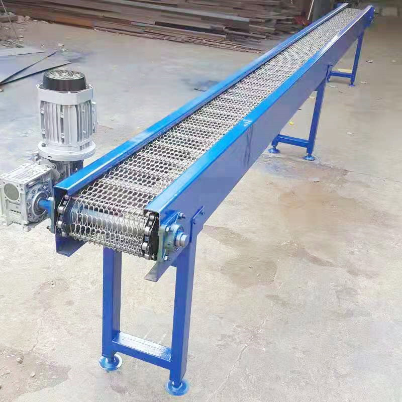 鏈條式網(wǎng)帶由一般的輸送網(wǎng)帶兩側(cè)加裝鏈條及橫向支撐桿而成,鏈輪傳動(dòng),網(wǎng)帶寬帶固定不變形。調(diào)整網(wǎng)帶不同的節(jié)距,即可安裝不同形式的鏈條,容易安裝網(wǎng)帶的附屬配件,如擋板,側(cè)翼。。。。。網(wǎng)面平整,可承載較重的壓力和拉力,通風(fēng)透氣性能好,節(jié)能環(huán)保,網(wǎng)面潔凈無(wú)毒,而且容易清洗,維修和拆卸極為方便,鏈條式網(wǎng)帶被廣泛用于食品速凍,蔬菜除沙,清洗殺菌,殺菌預(yù)煮,烘烤,干燥,電子行業(yè)生產(chǎn)線。