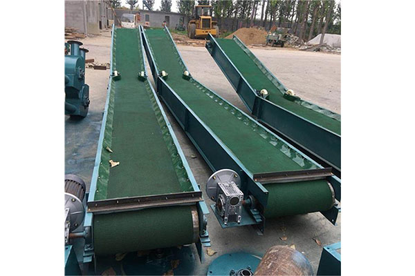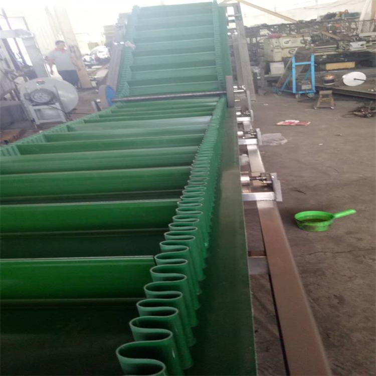 綠色皮帶提升輸送機,帶橫側(cè)擋板的綠色皮帶機,帶裙邊輸送機。
