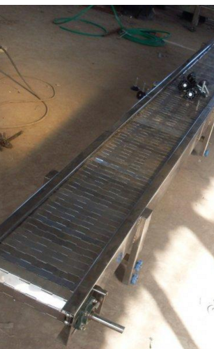 鏈板輸送機(jī):又叫鏈板傳送機(jī),鏈板線,鏈板傳送帶。是一種利用循環(huán)往復(fù)的鏈條作為牽引動(dòng)力,以金屬板作為輸送承載體的一種輸送機(jī)械設(shè)備。國(guó)內(nèi)市場(chǎng)上有兩種鏈板輸送機(jī),一種是用鏈條,支軸和金屬板組成的輸送鏈板做成的輸送機(jī);一種是用帶彎板的鏈條和金屬板組成的金屬板輸送帶做成的鏈板輸送機(jī),另一種是平頂鏈鏈板輸送機(jī)。