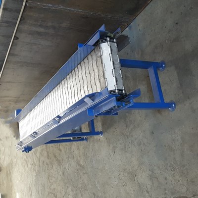 1,如果輸送機是提升機,是傾斜爬坡輸送機,輸送的時候帶角度提升輸送,盡量在輸送帶上加上橫擋板,在輸送帶上加上防滑隔板。