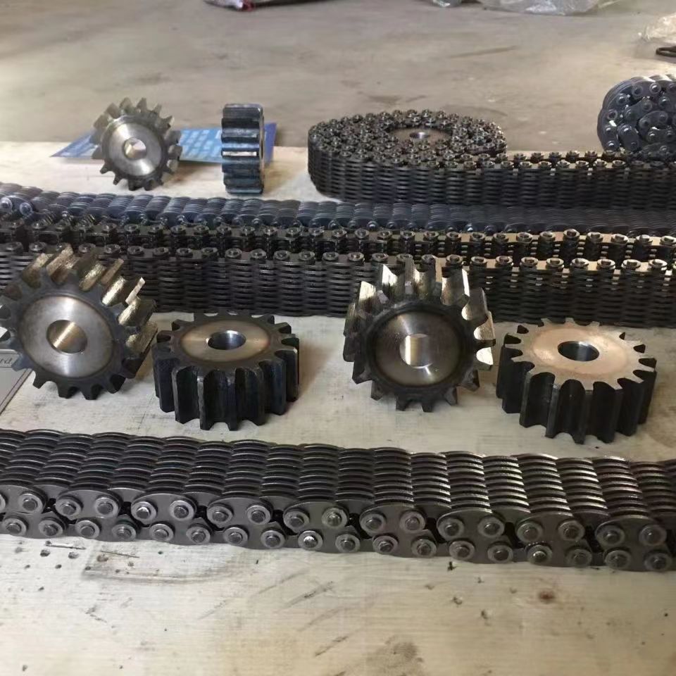 無聲鏈 齒形鏈輪 無聲鏈:也叫齒形鏈條,采用無聲齒形鏈輪帶動(dòng)運(yùn)轉(zhuǎn)傳動(dòng)。寧津縣榮發(fā)齒輪廠定做各種無聲齒形鏈條,無聲齒形鏈輪。我們根據(jù)客戶自己的情況,客戶選型成功,我們根據(jù)客戶的數(shù)據(jù)非標(biāo)定做各種齒形鏈條和無聲齒形鏈輪。齒形鏈條節(jié)距4.7625,6.35 9.525 12.7 15.875 19.05 25.4 31.75 38.1毫米的鏈條都能做,無聲齒形鏈輪根據(jù)客戶的齒數(shù)和外徑,內(nèi)孔,鍵槽定做。無聲齒形鏈條的獨(dú)特優(yōu)點(diǎn):高速,無噪音,高承載傳動(dòng)能力,轉(zhuǎn)矩大等等優(yōu)點(diǎn),逐漸取代精密滾子鏈條和同步帶。