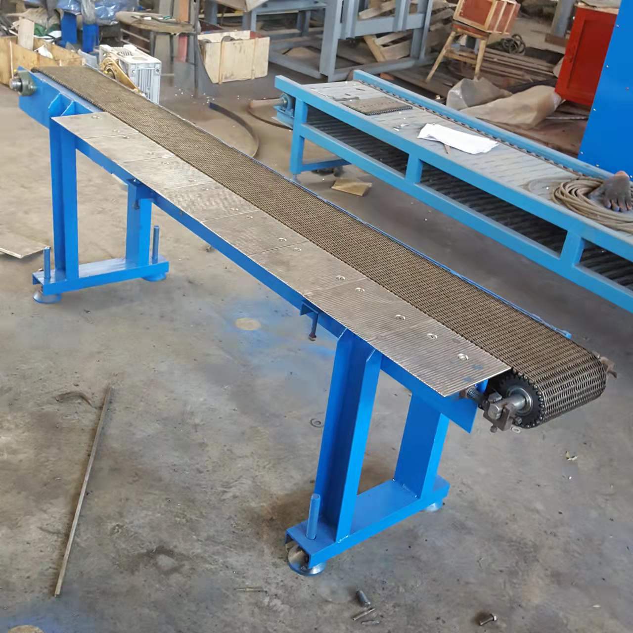 這種輸送機(jī)叫玻璃機(jī)械輸瓶機(jī),是玻璃廠用的輸送機(jī),用在制瓶機(jī)延長(zhǎng)支架附件的輸送機(jī),長(zhǎng)度寬度高度都根據(jù)客戶要求定做。
