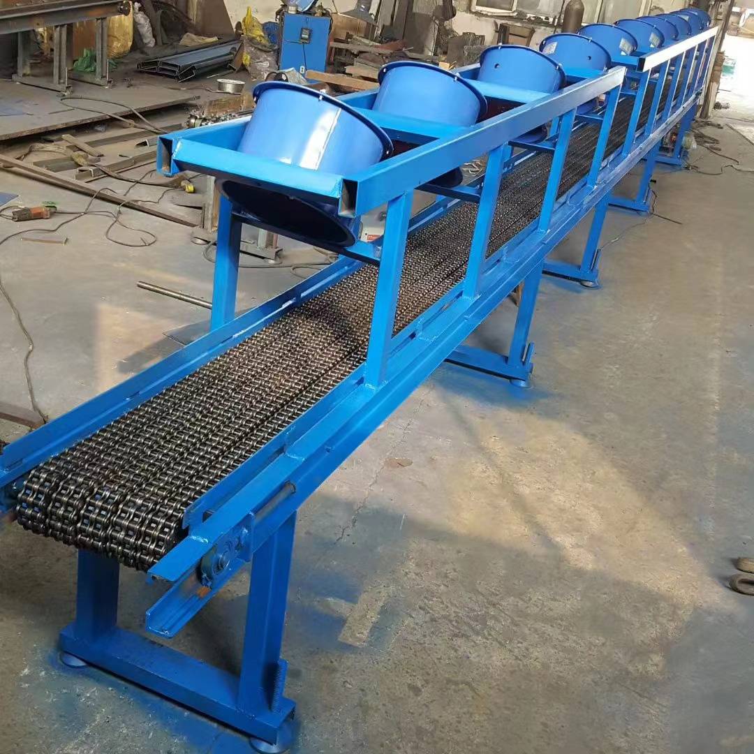 輸送鏈 鍛造自動化輸送鏈 傳送鍛壓輸送機,鍛打輸送機,熱鍛紅沖輸送機,鍛造熱處理淬火提升機,熱鍛造件降溫風冷輸送機 鏈條輸送機 鏈板輸送機 板式提升機 鏈條片輸送機 帶風機降溫輸送機 滾筒輸送機 熱鍛造件輸送機:是用于鍛造行業(yè),用來輸送鍛造件的一種傳送帶,可以用于輸送圓鋼,加熱爐出來的紅毛坯,紅熱方鋼圓鋼,用于各個鍛壓機之間鍛件的輸送,用于水槽油槽鍛造件的熱處理淬火,用于熱鍛造件的風冷水冷降溫輸送。鍛造生產(chǎn)線的各個輸送傳送。 功能特點 1.速度快慢可調(diào),有無極調(diào)速電機和變頻器控制柜控制速度快慢,操作簡單 2,輸送速度快,精密鏈條適合高速傳送,耐磨,適合長時間高速運轉(zhuǎn)傳送 3,輸送機可連續(xù)輸送,可間歇性輸送。 4,輸送機的寬度根據(jù)被輸送的金屬件的大小靈活的設(shè)計輸送機的寬度 長度根據(jù)輸送的距離來設(shè)計。5,輸送機可以做成水平直輸送的,提升爬坡輸送的。第一集:輸送鏈 耐高溫傳送鏈條 鍛造輸送鏈 鍛造輸送機 鍛造輸送鏈 冷卻鏈 降溫輸送鏈 熱鍛造輸送鏈 鍛造輸送鏈具有耐高溫、不變形等特點,且重量輕而強度大,耐磨性好,抗沖擊力強,維護性好等優(yōu)勢。榮達擁有單排輸送鏈、雙排輸送鏈、串桿輸送鏈、板鏈輸送鏈、網(wǎng)鏈輸送鏈等不同形態(tài)的產(chǎn)品。根據(jù)不同類型的產(chǎn)品,工藝方式的不同,滿足客戶的各種不同應用場景需求。 榮達機械可以根據(jù)客戶的使用要求和現(xiàn)場安裝的需要,設(shè)計、制造各種規(guī)格的產(chǎn)品和設(shè)備,為客戶提供合理價格的優(yōu)質(zhì)產(chǎn)品。1,耐高溫2,耐磨性好 3,運行穩(wěn)定4,抗沖擊力強 5,類型多并可定制 聯(lián)系方式:寧津縣榮達機械制造有限責任公司 方春領(lǐng) 13210447625 18315825408 0534-5535628