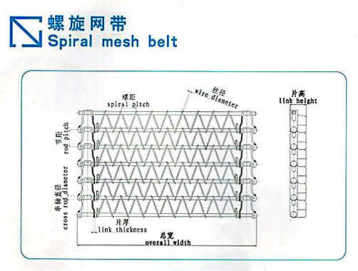 螺旋網(wǎng)帶的規(guī)格型號(hào)節(jié)距(毫米):19.05,25.4,27.4,30,30.5,38.1