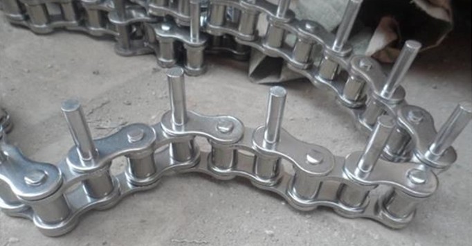 加長(zhǎng)銷(xiāo)軸鏈條:一種把鏈條的銷(xiāo)軸加長(zhǎng)的鏈條,可以單側(cè)加長(zhǎng),雙側(cè)加長(zhǎng),加長(zhǎng)銷(xiāo)軸上打孔,隔節(jié)加長(zhǎng)。我們做的加長(zhǎng)銷(xiāo)軸鏈條有A B系列加長(zhǎng)銷(xiāo)軸鏈條和雙節(jié)距直板大滾子輸送鏈條。加長(zhǎng)銷(xiāo)軸鏈條就是把一般的鏈條的銷(xiāo)軸加長(zhǎng),用來(lái)固定其他附件。