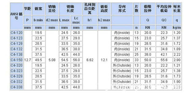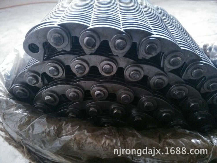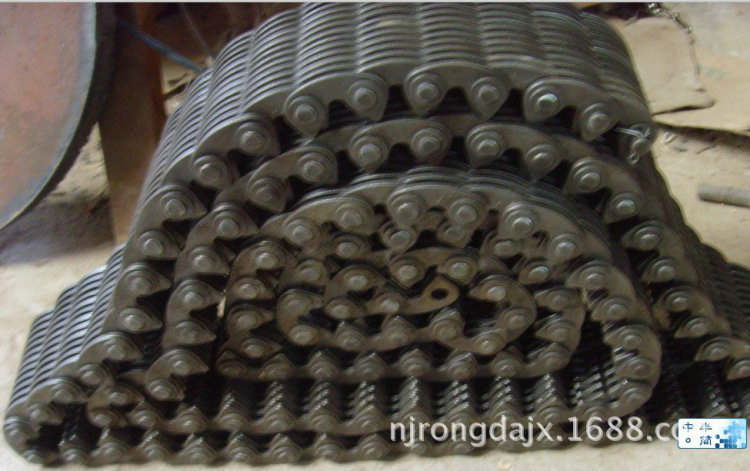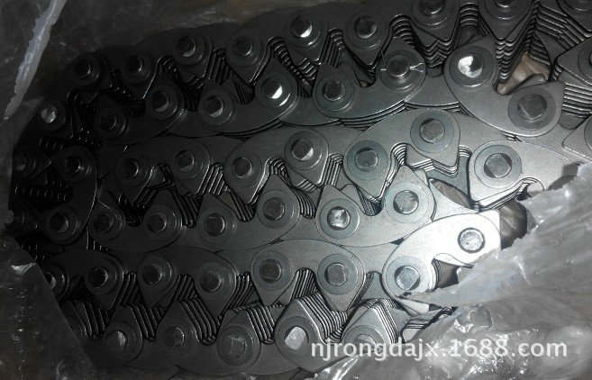 齒形鏈條簡介:也叫無聲鏈,傳動鏈條,齒型鏈條,英文Silent chain,屬于傳動鏈條的一種形式。我國的國家標(biāo)準(zhǔn):GB/TB10855-2003《齒形鏈和鏈輪》。齒形鏈?zhǔn)怯梢幌盗械凝X鏈板和導(dǎo)板交替裝配且銷軸或組合的鉸接原件連接而成。根據(jù)導(dǎo)向形式可分為:外導(dǎo)齒形鏈,內(nèi)導(dǎo)齒形鏈或雙內(nèi)導(dǎo)齒形鏈。