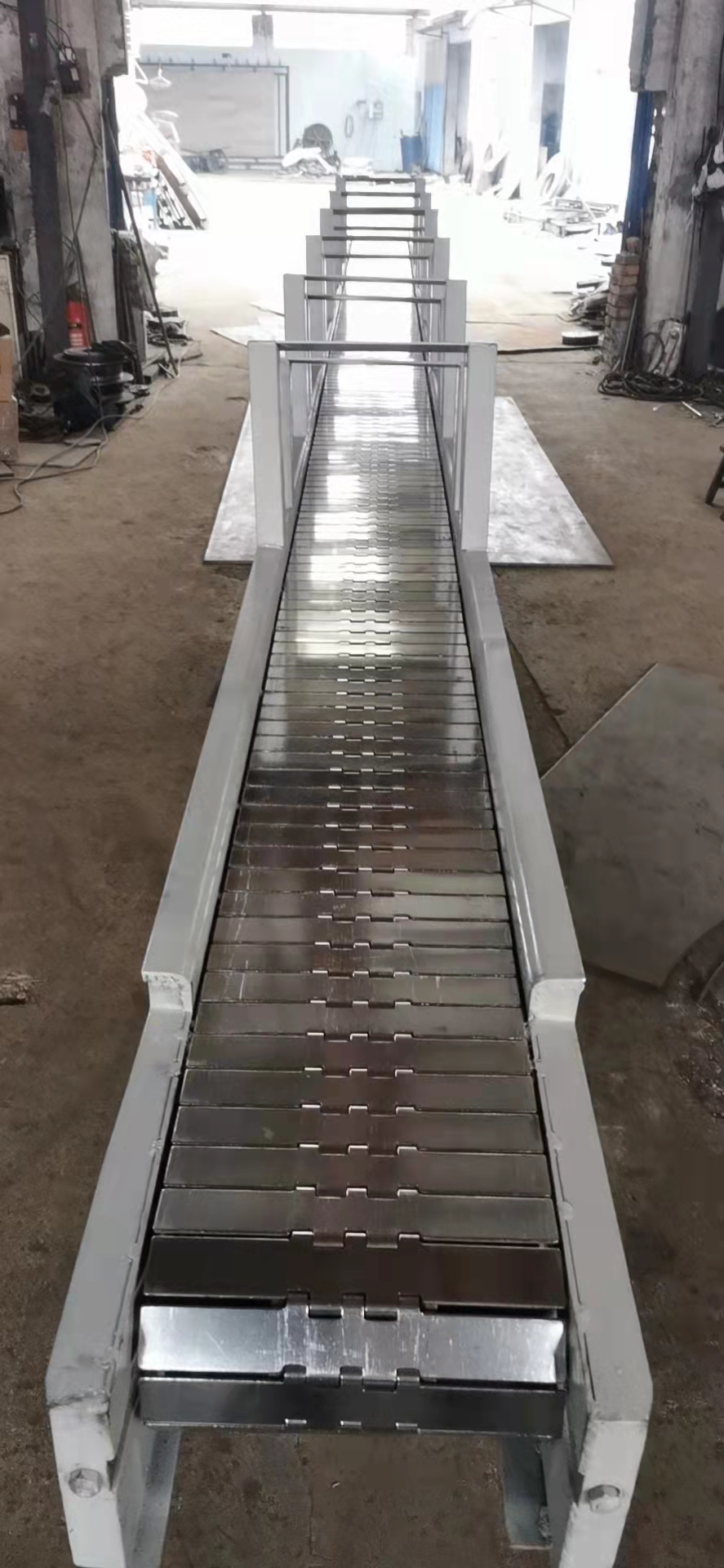 4,合頁(yè)鏈板輸送帶,排屑鏈板輸送帶,槽鋼鏈板輸送帶。