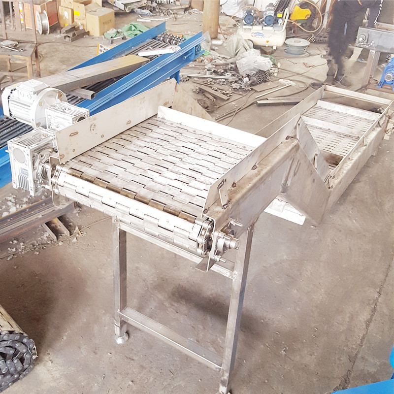 水槽的鏈板提升機,長度4米,寬度60公分,一頭高25公分,一頭高1.45米 。