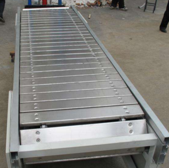 鏈板輸送機(jī):又叫鏈板傳送機(jī),鏈板線,鏈板傳送帶。是一種利用循環(huán)往復(fù)的鏈條作為牽引動(dòng)力,以金屬板作為輸送承載體的一種輸送機(jī)械設(shè)備。國(guó)內(nèi)市場(chǎng)上有兩種鏈板輸送機(jī),一種是用鏈條,支軸和金屬板組成的輸送鏈板做成的輸送機(jī);一種是用帶彎板的鏈條和金屬板組成的金屬板輸送帶做成的鏈板輸送機(jī),另一種是平頂鏈鏈板輸送機(jī)。