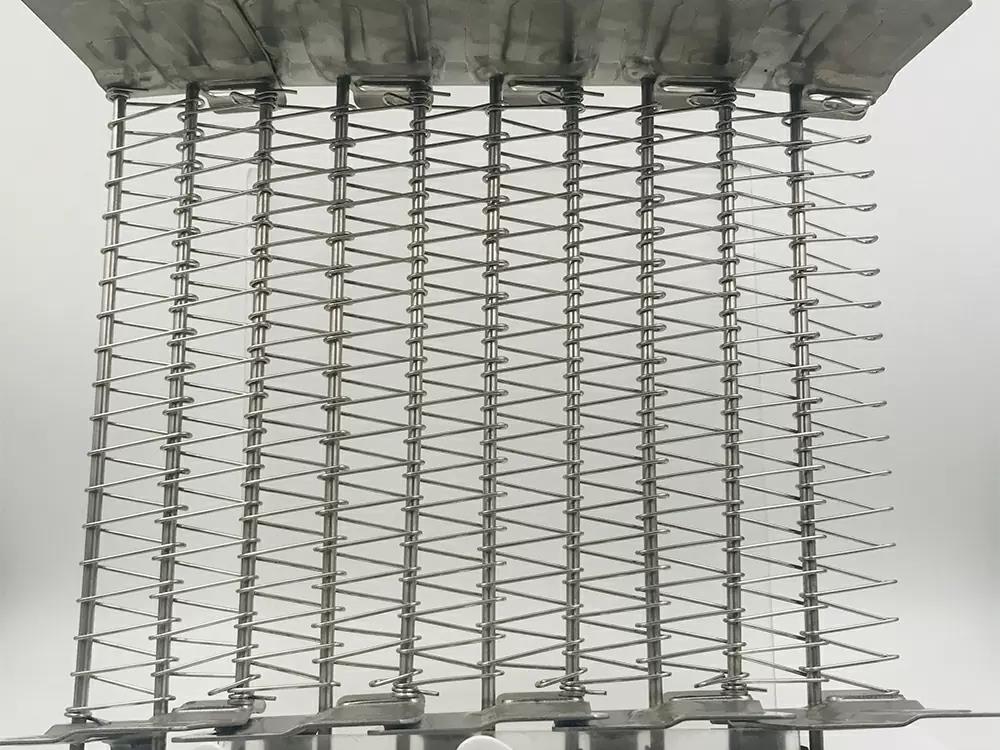 密集型設(shè)計(jì)可以節(jié)省空間 提供快速有效的食物冷凍 堆積式網(wǎng)面平整,通風(fēng)良好,衛(wèi)生、清潔方便 高抗拉不銹鋼鋼硬絲生產(chǎn),網(wǎng)帶耐磨性高,高強(qiáng)度鏈板,網(wǎng)帶強(qiáng)度高