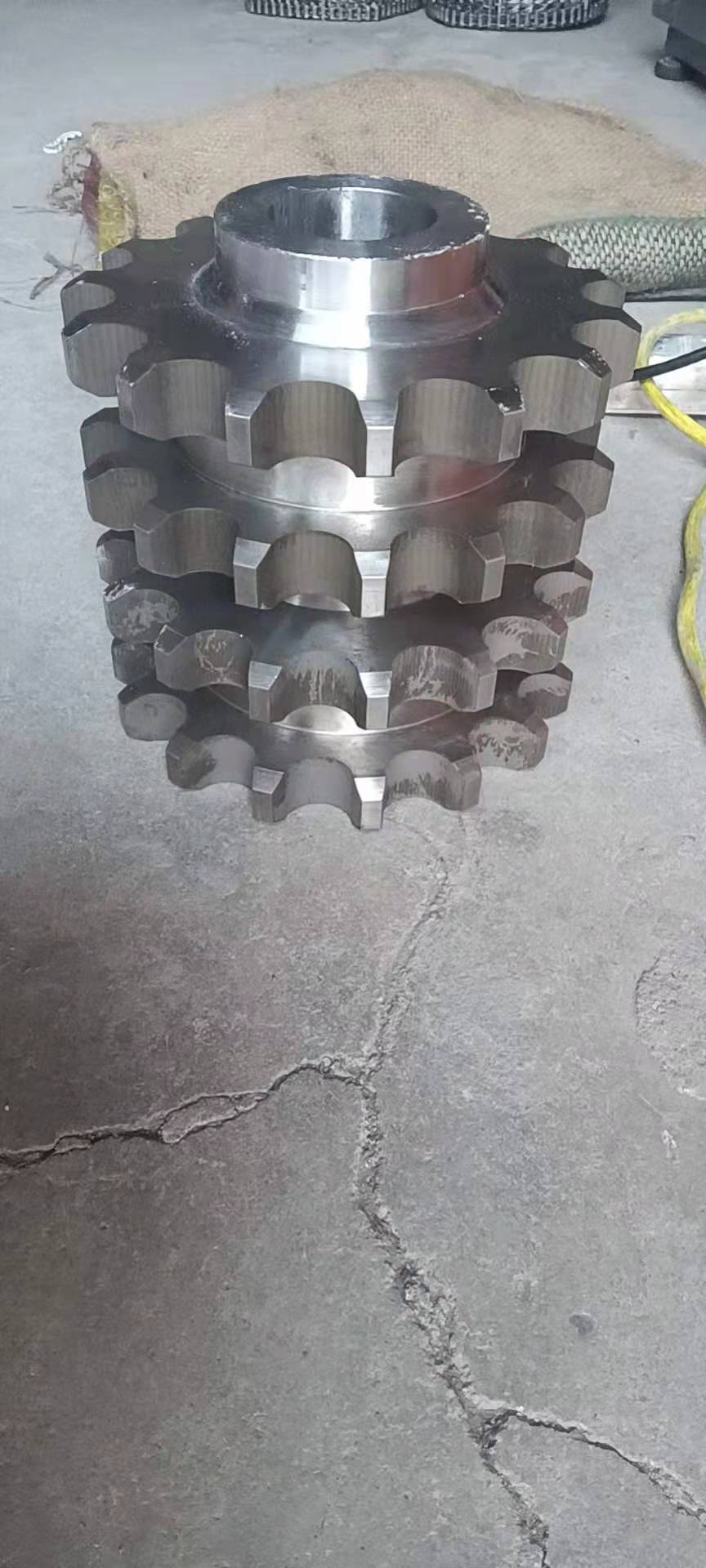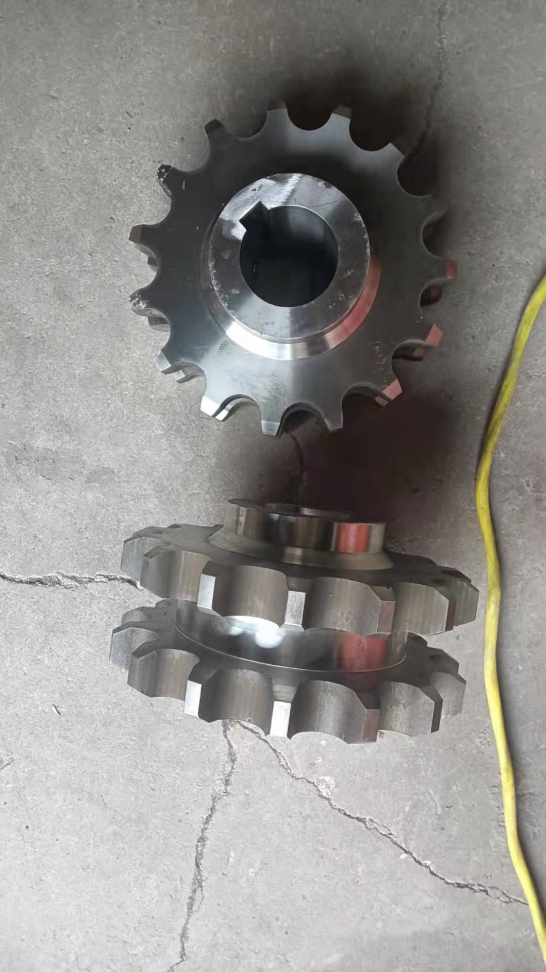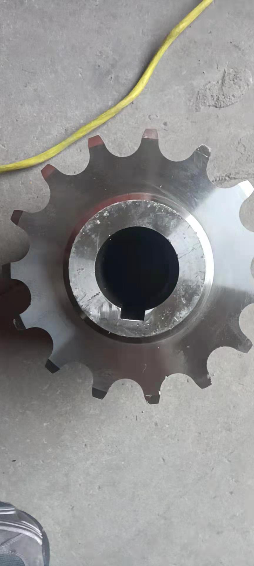 廠家直銷不銹鋼鏈輪的結(jié)構(gòu):鏈輪一種帶嵌齒式扣鏈齒的輪子,用以與節(jié)鏈環(huán)或纜索上節(jié)距準確的塊體相嚙合。鏈輪被廣泛應(yīng)用于化工、紡織機械、食品加工、儀表儀器、石油等行業(yè)的機械傳動等。鏈輪結(jié)構(gòu)設(shè)計:1、鏈輪的齒形鏈輪齒形必須保證鏈節(jié)能平穩(wěn)自如地進入和退出嚙合,盡量減少嚙合時的鏈節(jié)的沖擊和接觸應(yīng)力,而且要易于加工。它是由三段圓弧aa、ab、cd和一段直線bc構(gòu)成,簡稱三圓弧-直線齒形。齒形用標準刀具加工,在鏈輪工作圖上不必繪制端面齒形,只需在圖上注明"齒形按3RGB1244-85規(guī)定制造"即可,但應(yīng)繪制鏈輪的軸面齒形,其尺寸參閱有關(guān)設(shè)計手冊。2、鏈輪結(jié)構(gòu)小直徑鏈輪一般做成整體式,中等直徑鏈輪多做成輻板式,為便于搬運、裝卡和減重,在輻板上開孔,大直徑鏈輪可做成組合式,此時齒圈與輪芯可用不同材料制造。例如C45,不銹鋼等材料。3、鏈輪材料鏈輪材料應(yīng)保證輪齒有足夠的強度和耐磨性,故鏈輪齒面一般都經(jīng)過熱處理,使之達到一定硬度。