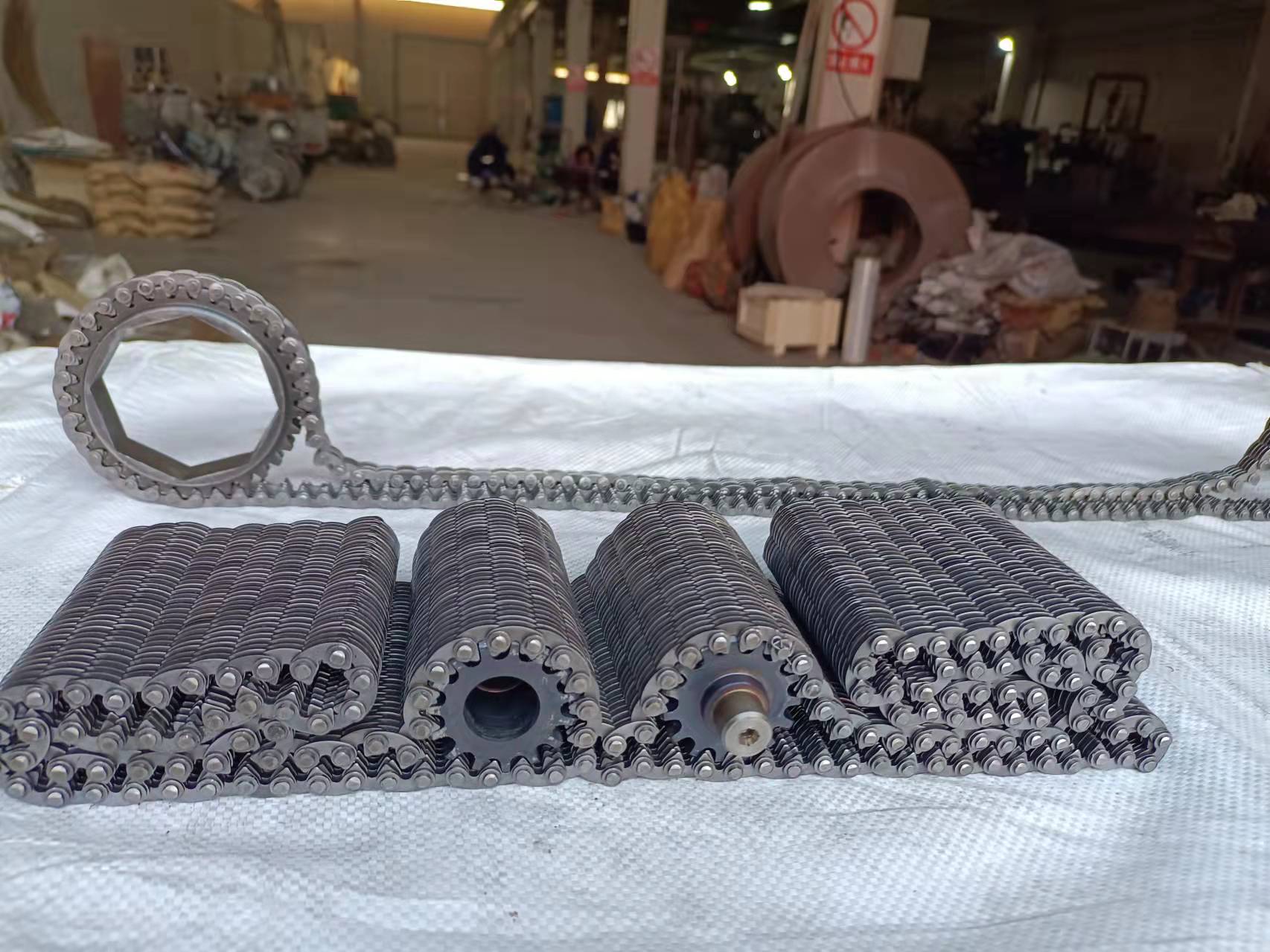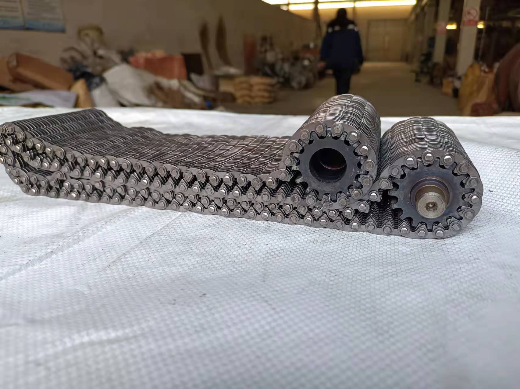 1)齒形鏈條受多邊形效應(yīng)影響小,比其他鏈條鉸接摩擦??;齒形鏈條于齒輪鏈輪嚙合能減小沖擊,噪音和摩擦損失。