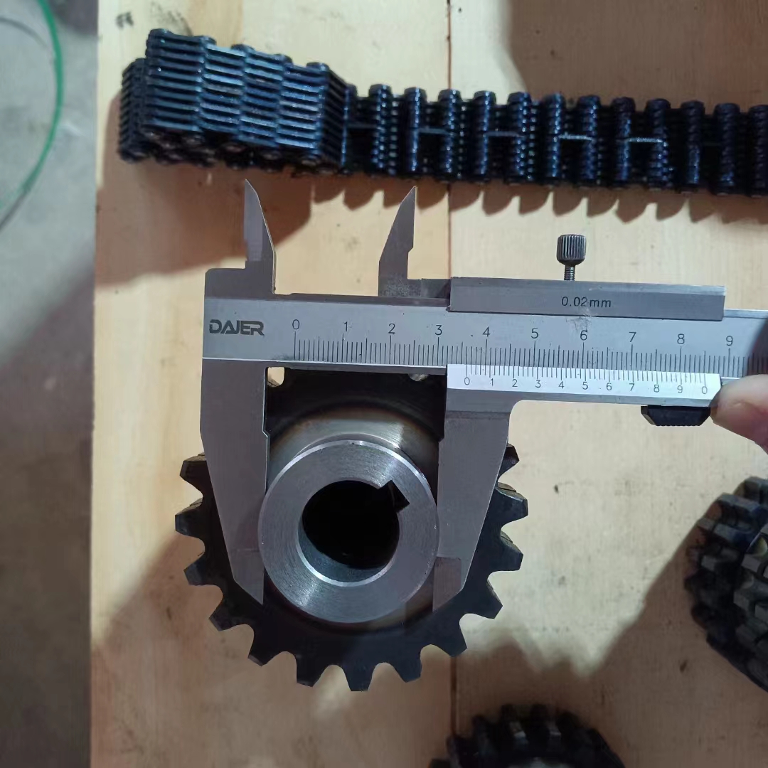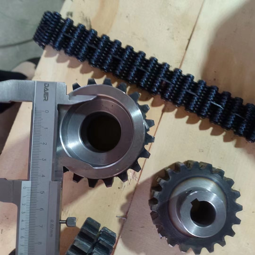 無聲鏈 齒形鏈輪 無聲鏈:也叫齒形鏈條,采用無聲齒形鏈輪帶動運轉傳動。寧津縣榮達機械制造有限責任公司定做各種無聲齒形鏈條,無聲齒形鏈輪。我們根據(jù)客戶自己的情況,客戶選型成功,我們根據(jù)客戶的數(shù)據(jù)非標定做各種齒形鏈條和無聲齒形鏈輪。齒形鏈條節(jié)距4.7625,6.35 9.525 12.7 15.875 19.05 25.4 31.75 38.1毫米的鏈條都能做,無聲齒形鏈輪根據(jù)客戶的齒數(shù)和外徑,內孔,鍵槽定做。無聲齒形鏈條的獨特優(yōu)點:高速,無噪音,高承載傳動能力,轉矩大等等優(yōu)點,逐漸取代精密滾子鏈條和同步帶。