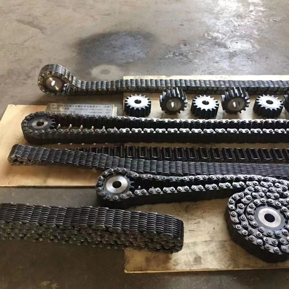 無聲鏈 齒形鏈輪 無聲鏈:也叫齒形鏈條,采用無聲齒形鏈輪帶動(dòng)運(yùn)轉(zhuǎn)傳動(dòng)。寧津縣榮發(fā)齒輪廠定做各種無聲齒形鏈條,無聲齒形鏈輪。我們根據(jù)客戶自己的情況,客戶選型成功,我們根據(jù)客戶的數(shù)據(jù)非標(biāo)定做各種齒形鏈條和無聲齒形鏈輪。齒形鏈條節(jié)距4.7625,6.35 9.525 12.7 15.875 19.05 25.4 31.75 38.1毫米的鏈條都能做,無聲齒形鏈輪根據(jù)客戶的齒數(shù)和外徑,內(nèi)孔,鍵槽定做。無聲齒形鏈條的獨(dú)特優(yōu)點(diǎn):高速,無噪音,高承載傳動(dòng)能力,轉(zhuǎn)矩大等等優(yōu)點(diǎn),逐漸取代精密滾子鏈條和同步帶。