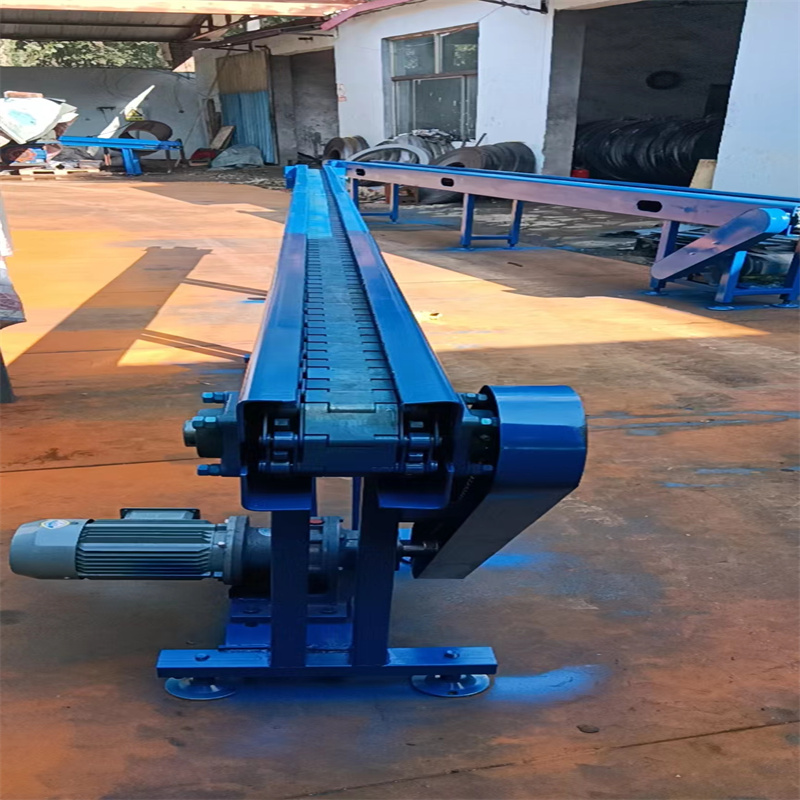 鏈板式輸送機(jī),利用固接在牽引鏈上的一系列鏈板在水平或傾斜方向輸送物料的輸送機(jī),以單片鋼板鉸接成環(huán)帶作為運(yùn)輸機(jī)的牽引和承載構(gòu)件承載面具有橫向隔片置于槽箱中驅(qū)動環(huán)帶借隔片將煤刮運(yùn)輸出。它由驅(qū)動機(jī)構(gòu)、張緊裝置、牽引鏈、板條、驅(qū)動及改向鏈輪、機(jī)架等部分組成。在冶金、煤炭、化工、電力、機(jī)械制造及國民經(jīng)濟(jì)的其他工業(yè)部門中均得到了廣泛的應(yīng)用。