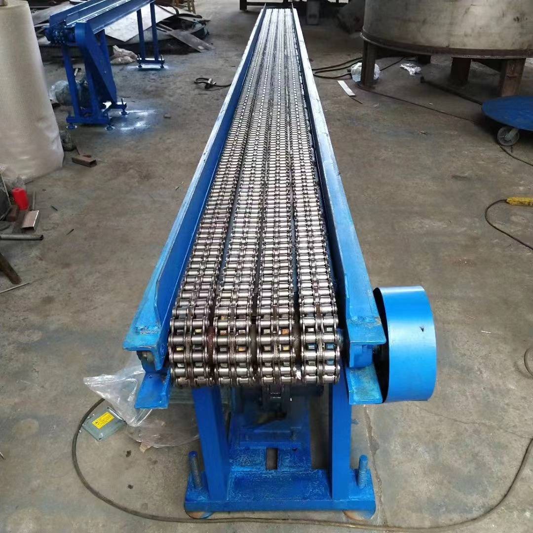 輸送鏈 鍛造自動化輸送鏈 傳送鍛壓輸送機,鍛打輸送機,熱鍛紅沖輸送機,鍛造熱處理淬火提升機,熱鍛造件降溫風(fēng)冷輸送機 鏈條輸送機 鏈板輸送機 板式提升機 鏈條片輸送機 帶風(fēng)機降溫輸送機 滾筒輸送機 熱鍛造件輸送機:是用于鍛造行業(yè),用來輸送鍛造件的一種傳送帶,可以用于輸送圓鋼,加熱爐出來的紅毛坯,紅熱方鋼圓鋼,用于各個鍛壓機之間鍛件的輸送,用于水槽油槽鍛造件的熱處理淬火,用于熱鍛造件的風(fēng)冷水冷降溫輸送。鍛造生產(chǎn)線的各個輸送傳送。 功能特點 1.速度快慢可調(diào),有無極調(diào)速電機和變頻器控制柜控制速度快慢,操作簡單 2,輸送速度快,精密鏈條適合高速傳送,耐磨,適合長時間高速運轉(zhuǎn)傳送 3,輸送機可連續(xù)輸送,可間歇性輸送。 4,輸送機的寬度根據(jù)被輸送的金屬件的大小靈活的設(shè)計輸送機的寬度 長度根據(jù)輸送的距離來設(shè)計。5,輸送機可以做成水平直輸送的,提升爬坡輸送的。第一集:輸送鏈 耐高溫傳送鏈條 鍛造輸送鏈 鍛造輸送機 鍛造輸送鏈 冷卻鏈 降溫輸送鏈 熱鍛造輸送鏈 鍛造輸送鏈具有耐高溫、不變形等特點,且重量輕而強度大,耐磨性好,抗沖擊力強,維護性好等優(yōu)勢。榮達擁有單排輸送鏈、雙排輸送鏈、串桿輸送鏈、板鏈輸送鏈、網(wǎng)鏈輸送鏈等不同形態(tài)的產(chǎn)品。根據(jù)不同類型的產(chǎn)品,工藝方式的不同,滿足客戶的各種不同應(yīng)用場景需求。 榮達機械可以根據(jù)客戶的使用要求和現(xiàn)場安裝的需要,設(shè)計、制造各種規(guī)格的產(chǎn)品和設(shè)備,為客戶提供合理價格的優(yōu)質(zhì)產(chǎn)品。1,耐高溫2,耐磨性好 3,運行穩(wěn)定4,抗沖擊力強 5,類型多并可定制