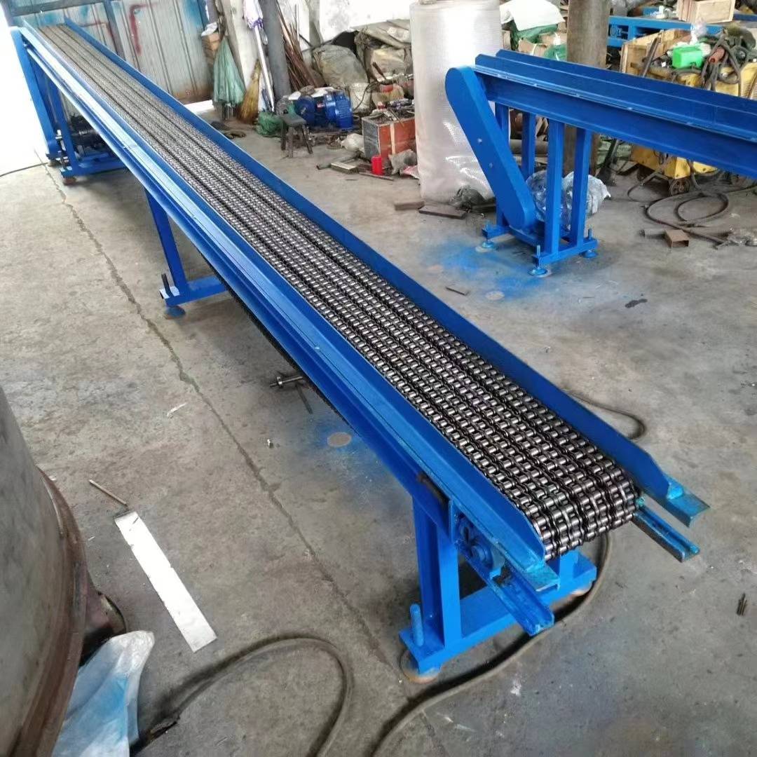 輸送鏈 鍛造自動(dòng)化輸送鏈 傳送鍛壓輸送機(jī),鍛打輸送機(jī),熱鍛紅沖輸送機(jī),鍛造熱處理淬火提升機(jī),熱鍛造件降溫風(fēng)冷輸送機(jī) 鏈條輸送機(jī) 鏈板輸送機(jī) 板式提升機(jī) 鏈條片輸送機(jī) 帶風(fēng)機(jī)降溫輸送機(jī) 滾筒輸送機(jī) 熱鍛造件輸送機(jī):是用于鍛造行業(yè),用來輸送鍛造件的一種傳送帶,可以用于輸送圓鋼,加熱爐出來的紅毛坯,紅熱方鋼圓鋼,用于各個(gè)鍛壓機(jī)之間鍛件的輸送,用于水槽油槽鍛造件的熱處理淬火,用于熱鍛造件的風(fēng)冷水冷降溫輸送。鍛造生產(chǎn)線的各個(gè)輸送傳送。 功能特點(diǎn) 1.速度快慢可調(diào),有無極調(diào)速電機(jī)和變頻器控制柜控制速度快慢,操作簡單 2,輸送速度快,精密鏈條適合高速傳送,耐磨,適合長時(shí)間高速運(yùn)轉(zhuǎn)傳送 3,輸送機(jī)可連續(xù)輸送,可間歇性輸送。 4,輸送機(jī)的寬度根據(jù)被輸送的金屬件的大小靈活的設(shè)計(jì)輸送機(jī)的寬度 長度根據(jù)輸送的距離來設(shè)計(jì)。5,輸送機(jī)可以做成水平直輸送的,提升爬坡輸送的。第一集:輸送鏈 耐高溫傳送鏈條 鍛造輸送鏈 鍛造輸送機(jī) 鍛造輸送鏈 冷卻鏈 降溫輸送鏈 熱鍛造輸送鏈 鍛造輸送鏈具有耐高溫、不變形等特點(diǎn),且重量輕而強(qiáng)度大,耐磨性好,抗沖擊力強(qiáng),維護(hù)性好等優(yōu)勢。榮達(dá)擁有單排輸送鏈、雙排輸送鏈、串桿輸送鏈、板鏈輸送鏈、網(wǎng)鏈輸送鏈等不同形態(tài)的產(chǎn)品。根據(jù)不同類型的產(chǎn)品,工藝方式的不同,滿足客戶的各種不同應(yīng)用場景需求。 榮達(dá)機(jī)械可以根據(jù)客戶的使用要求和現(xiàn)場安裝的需要,設(shè)計(jì)、制造各種規(guī)格的產(chǎn)品和設(shè)備,為客戶提供合理價(jià)格的優(yōu)質(zhì)產(chǎn)品。1,耐高溫2,耐磨性好 3,運(yùn)行穩(wěn)定4,抗沖擊力強(qiáng) 5,類型多并可定制