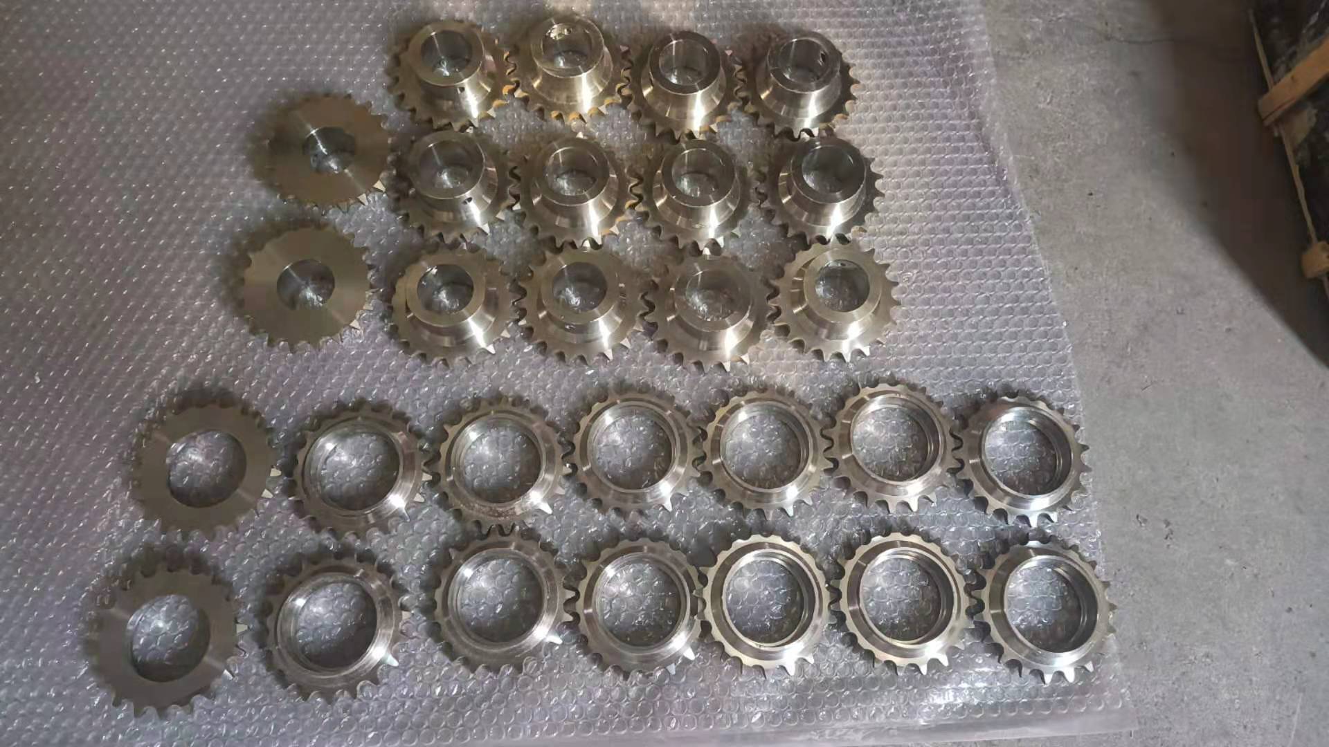 鏈輪軸面齒形兩側(cè)呈圓弧狀,以便于鏈節(jié)進入和退出嚙合。齒形用標準刀具加工時,在鏈輪工作圖上不必繪制端面齒形,但須繪出鏈輪軸面齒形,以便車削鏈輪毛壞。軸面齒形的具體尺寸見有關(guān)設(shè)計手冊。鏈輪齒應(yīng)有足夠的接觸強度和耐磨性,故齒面多經(jīng)熱處理。小鏈輪的嚙合次數(shù)比大鏈輪多,所受沖擊力也大,故所用材料一般應(yīng)優(yōu)于大鏈輪。常用的鏈輪材料有碳素鋼(如Q235、Q275、45、ZG310-570等)、灰鑄鐵(如HT200)等。重要的鏈輪可采用合金鋼。小直徑鏈輪可制成實心式;中等直徑的鏈輪可制成孔板式;直徑較大的鏈輪可設(shè)計成組合式,若輪齒因磨損而失效,可更換齒圈。