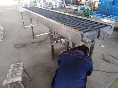 滾筒輸送機適用于各類箱、包、托盤等件貨的輸送,散料、小件物品或不規(guī)則的物品需放在托盤上或周轉(zhuǎn)箱內(nèi)輸送。能夠輸送單件重量很大的物料,或承受較大的沖擊載荷,滾筒線之間易于銜接過渡,可用多條滾筒線及其它輸送機或?qū)C組成復(fù)雜的物流輸送系統(tǒng),完成多方面的工藝需要??刹捎梅e放滾筒實現(xiàn)物料的堆積輸送。滾筒輸送機結(jié)構(gòu)簡單,可靠性高,使用維護方便。滾筒輸送機適用于底部是平面的物品輸送,主要由傳動滾筒、機架、支架、驅(qū)動部等部分組成。具有輸送量大,速度快,運轉(zhuǎn)輕快,能夠?qū)崿F(xiàn)多品種共線分流輸送的特點。滾筒輸送機結(jié)構(gòu)形式:按驅(qū)動方式可分為動力滾筒線和無動力滾筒線,按布置形式可分為水平輸送滾筒線、傾斜輸送滾筒 線和轉(zhuǎn)彎滾筒線。還可按客戶要求特殊設(shè)計,以滿足各類客戶的要求。標準規(guī)滾筒線內(nèi)寬度為200、300、400、500、1200mm等。也可按客戶需求采用其它特殊規(guī)格。轉(zhuǎn)彎滾筒線標準轉(zhuǎn)彎內(nèi)半徑為600、900、1200mm等,也可按客戶需求采用其它特殊規(guī)格。直段滾筒所用的滾筒直徑有38、50、 60、76、89mm 滾輸送機的注意事項 :第一:物品在輸送的任何時間點,物品底部都必須有最少有三根滾與物品底部接觸 第二:滾筒輸送機先空載啟動,運行正常在放物料,停止放物料,再停機。